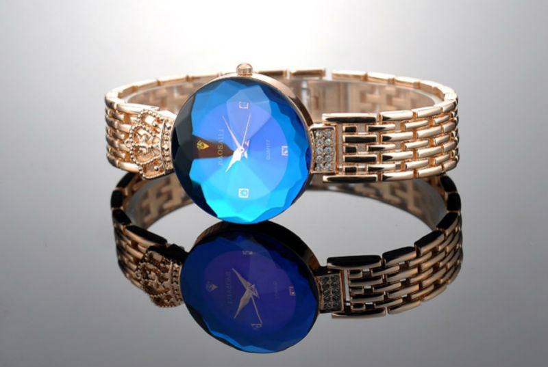 Создатели основательно потрудились над дизайном: часы выглядят намного престижнее, чем стоят. Красивый циферблат с граненым стеклом, который напоминает драгоценный камень, и широкий браслет с выгравированной короной сразу говорят о высоком статусе своей будущей владелицы.