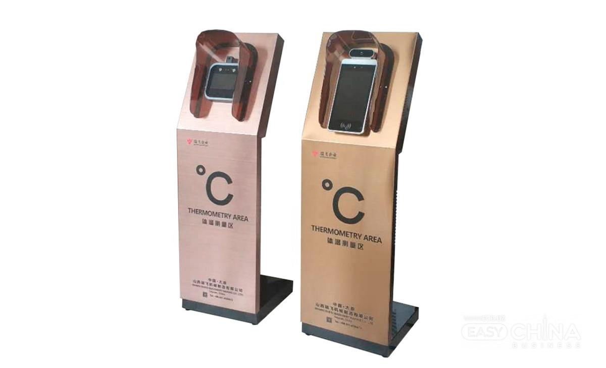 Мобильный стенд измерения температуры с терминалом контроля доступа по распознаванию лица.